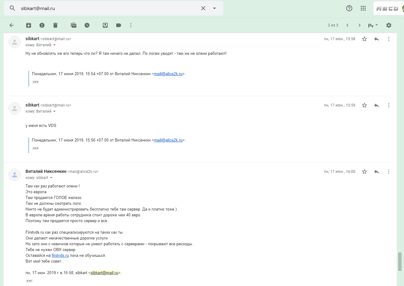 Если вы видите эту заглушку, значит у вас не создан сайт в разделе www-домены![]() alice2k.hosting Yacolo | ДЦ ovh | Suki.host | skladchik | Core | tower cloud | hetzner cloud ABCD Team | HostSuki Новостные ресурсы: Hostsuki.pro, Hosting.kitchen Другие полезные проекты: abuse.watch | host.report | tickets.cafe | benchmark.stream Сообщества: vm.center | default.town | lain.network | host.community | srv.house | hosting.kim Сервер собран в феврале 2019, рейтинг 2019 ВАЖНО: Это закрытый сервер. В общем долго рассказывать. Продолжене истории с s48.abcd Человек снова убил сервер, я ему отказал в повторной настройке. Он конечно не продлил. Проработал он кажется один или два месяца. Его IP был для истории - 91.121.222.49 E3-1245v2/32/2x480SSD |